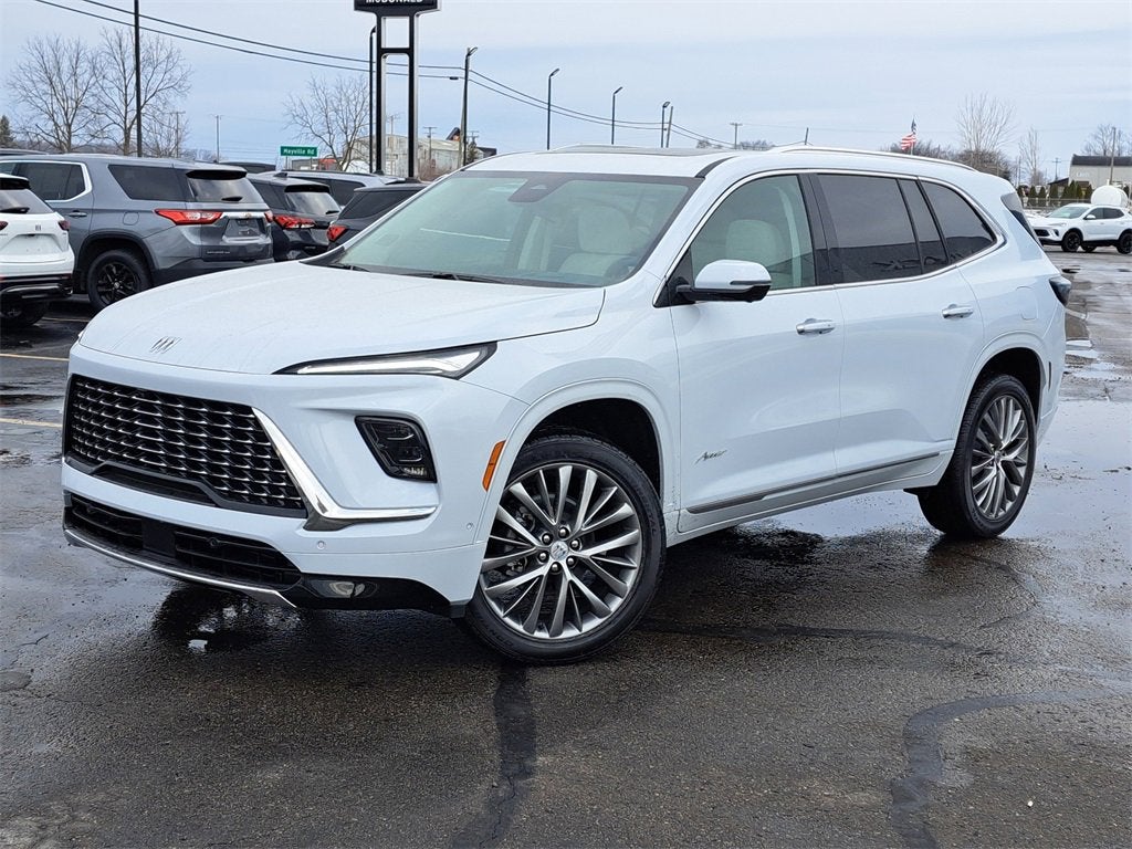 iridescent white tricoat 2026 Buick Enclave Avenir FWD 8-Speed Automatic 2.5L DOHC FWD, 16 Speakers, 3rd row seats: split-bench, 4-Wheel Disc Brakes, ABS brakes, Adaptive suspension, Air Conditioning, Alloy wheels, AM/FM radio: SiriusXM with 360L, Apple CarPlay/Android Auto, Auto High-beam Headlights, Auto tilt-away steering wheel, Auto-dimming door mirrors, Auto-dimming Rear-View mirror, Automatic temperature control, Bose Performance 16-Speaker Audio System with Subwoofer, Brake assist, Bumpers: body-color, Compass, Delay-off headlights, Driver 4-Way Power Lumbar Seat Adjuster, Driver 8-Way Power Seat Adjuster, Driver door bin, Driver Massage Control with 4-Way Power Lumbar, Driver vanity mirror, Dual front impact airbags, Dual front side impact airbags, Electronic Stability Control, Emergency communication system: OnStar and Buick connected services capable, Four wheel independent suspension, Front anti-roll bar, Front Bucket Seats, Front Center Armrest, Front dual zone A/C, Front Passenger 4-Way Power Lumbar Seat Adjuster, Front Passenger 6-Way Power Seat Adjuster, Front Passenger Massage Control with 4-Way Power Lumbar, Front reading lights, Fully automatic headlights, Garage door transmitter, Heads-Up Display, Heated door mirrors, Heated Driver and Front Passenger Seats, Heated front seats, Heated rear seats, Heated steering wheel, Illuminated entry, Leather steering wheel, Low tire pressure warning, Memory seat, Memory Settings, Navigation System, Occupant sensing airbag, Outside temperature display, Overhead airbag, Overhead console, Panic alarm, Passenger door bin, Passenger vanity mirror, Power door mirrors, Power driver seat, Power Liftgate, Power moonroof, Power passenger seat, Power steering, Power windows, Premium audio system: Buick Infotainment System, Quilted and Perforated Leather-Appointed Seat Trim, Radio data system, Radio: Infotainment Center, Rain sensing wipers, Rear air conditioning, Rear anti-roll bar, Rear reading lights, Rear side impact airbag, Rear window defroster, Rear window wiper, Remote keyless entry, Security system, SiriusXM with 360L Trial Subscription, Speed control, Speed-sensing steering, Spoiler, Steering wheel memory, Steering wheel mounted audio controls, Tachometer, Telescoping steering wheel, Tilt steering wheel, Traction control, Trip computer, Turn signal indicator mirrors, Variably intermittent wipers, Ventilated Driver and Front Passenger Seats, Ventilated front seats, Ventilated rear seats, Voltmeter, Wheels: 22 Alloy with Avenir Pearl Nickel Finish, Wireless Apple CarPlay, Wireless Google Android Auto, FWD.