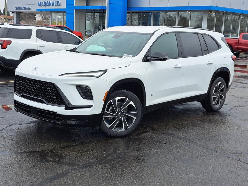 Summit White 2026 Buick Enclave Sport Touring FWD 8-Speed Automatic 2.5L DOHC FWD, 12 Speakers, 3rd row seats: split-bench, 4-Wheel Disc Brakes, ABS brakes, Air Conditioning, Alloy wheels, AM/FM radio: SiriusXM with 360L, Apple CarPlay/Android Auto, Auto High-beam Headlights, Auto-dimming door mirrors, Auto-dimming Rear-View mirror, Automatic temperature control, Bose Premium 12-Speaker Audio System with Subwoofer, Brake assist, Bumpers: body-color, Compass, Delay-off headlights, Driver 4-Way Power Lumbar Seat Adjuster, Driver 8-Way Power Seat Adjuster, Driver door bin, Driver vanity mirror, Dual front impact airbags, Dual front side impact airbags, Electronic Stability Control, Emergency communication system: OnStar and Buick connected services capable, Four wheel independent suspension, Front anti-roll bar, Front Bucket Seats, Front Center Armrest, Front dual zone A/C, Front Passenger 4-Way Power Lumbar Seat Adjuster, Front Passenger 6-Way Power Seat Adjuster, Front reading lights, Fully automatic headlights, Heated door mirrors, Heated Driver and Front Passenger Seats, Heated front seats, Heated steering wheel, Illuminated entry, Leather steering wheel, Low tire pressure warning, Navigation System, Occupant sensing airbag, Outside temperature display, Overhead airbag, Overhead console, Panic alarm, Passenger door bin, Passenger vanity mirror, Perforated Leatherette Seat Trim, Power door mirrors, Power driver seat, Power Liftgate, Power passenger seat, Power steering, Power windows, Preferred Equipment Group 1SM, Premium audio system: Buick Infotainment System, Radio data system, Radio: Infotainment Center, Rear air conditioning, Rear anti-roll bar, Rear reading lights, Rear side impact airbag, Rear window defroster, Rear window wiper, Remote keyless entry, Security system, SiriusXM with 360L Trial Subscription, Speed control, Speed-sensing steering, Spoiler, Sport steering wheel, Steering wheel mounted audio controls, Tachometer, Telescoping steering wheel, Tilt steering wheel, Traction control, Trip computer, Turn signal indicator mirrors, Variably intermittent wipers, Voltmeter, Wheels: 20 Alloy with High Gloss Black and Machine Finish, Wireless Apple CarPlay, Wireless Google Android Auto, FWD.