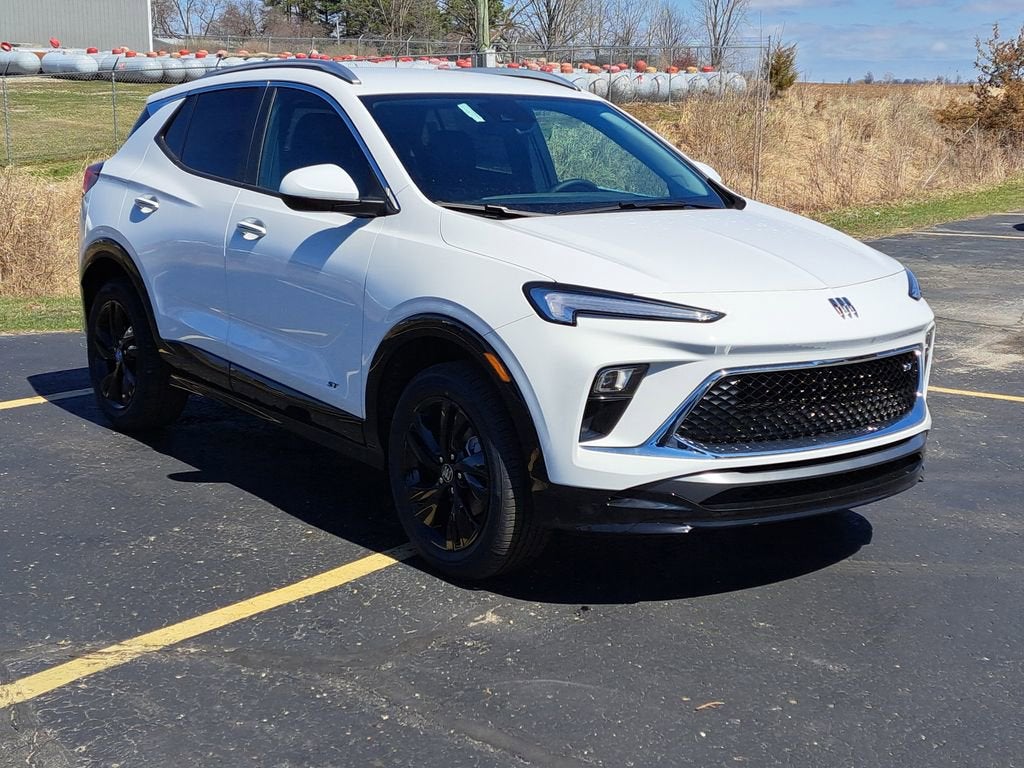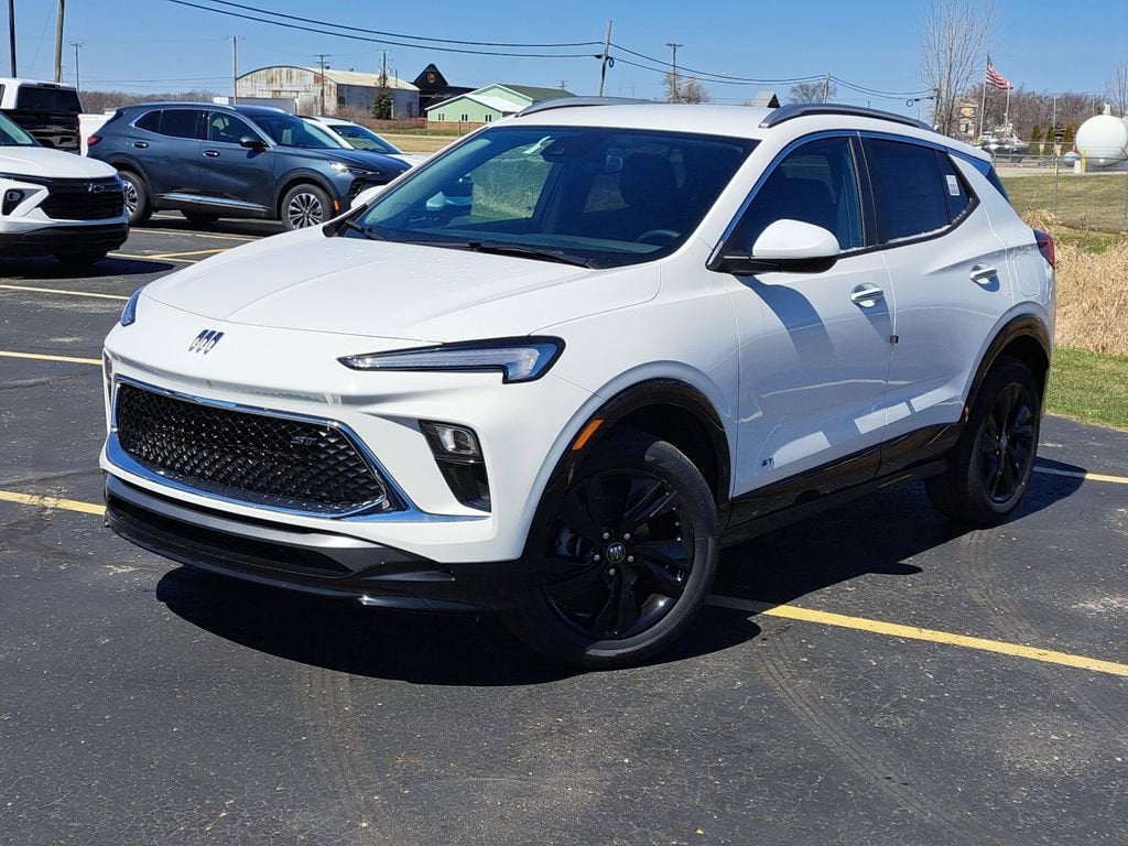 Summit White 2026 Buick Encore GX Sport Touring AWD 9-Speed Automatic ECOTEC 1.3L Turbo 3.17 Final Drive Axle Ratio, 4-Way Manual Passenger Seat Adjuster, 4-Wheel Disc Brakes, 6-Way Manual Driver Seat Adjuster, 7 Speakers, ABS brakes, Air Conditioning, Alloy wheels, AM/FM radio: SiriusXM, Auto High-beam Headlights, Automatic temperature control, Brake assist, Bumpers: body-color, Compass, Delay-off headlights, Driver door bin, Driver vanity mirror, Dual front impact airbags, Dual front side impact airbags, Electronic Stability Control, Emergency communication system: OnStar and Buick connected services capable, Enhanced Performance 7-Speaker System with Amplifier, Front anti-roll bar, Front Bucket Seats, Front Center Armrest, Front reading lights, Front wheel independent suspension, Fully automatic headlights, Heated door mirrors, Illuminated entry, Knee airbag, Leatherette Seat Trim, Low tire pressure warning, Occupant sensing airbag, Outside temperature display, Overhead airbag, Overhead console, Panic alarm, Passenger door bin, Passenger vanity mirror, Power door mirrors, Power steering, Power windows, Radio data system, Radio: AM/FM Audio System, Rear reading lights, Rear side impact airbag, Rear window defroster, Rear window wiper, Remote keyless entry, Ride and Handling Suspension, Security system, SiriusXM Trial Subscription, Speed control, Speed-sensing steering, Split folding rear seat, Spoiler, Sport steering wheel, Steering wheel mounted audio controls, Tachometer, Telescoping steering wheel, Tilt steering wheel, Traction control, Trip computer, Variably intermittent wipers, Wheels: 18 Gloss Black Aluminum, Wireless Apple CarPlay/Wireless Android Auto.