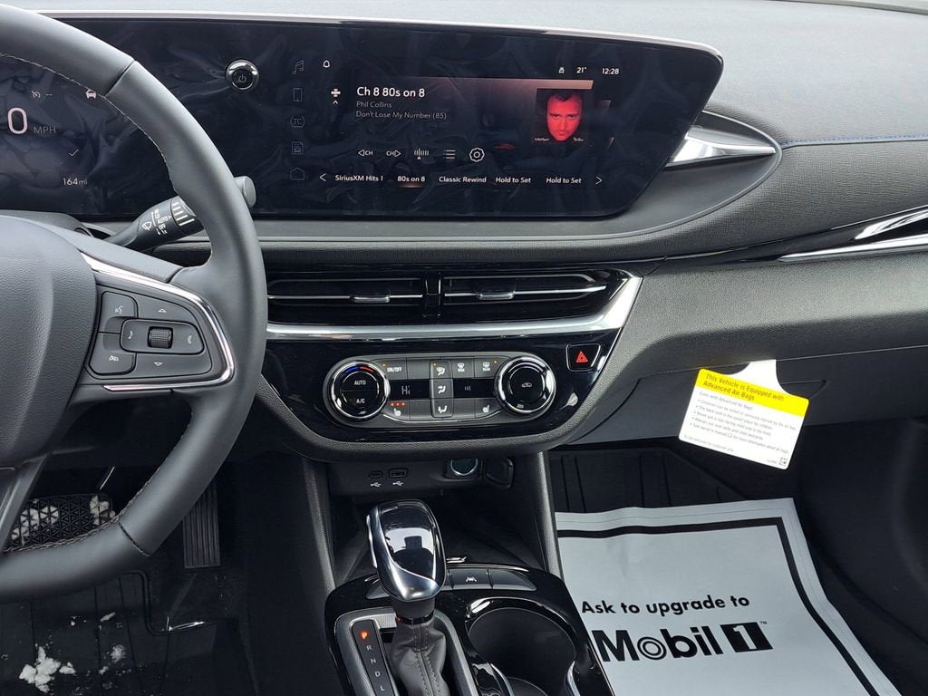 Ebony Twilight Metallic 2026 Buick Envista Sport Touring FWD 6-Speed Automatic ECOTEC 1.2L Turbo 2 USB Ports (1 Type-A, 1 Type-C), 3.50 Final Drive Axle Ratio, 4-Way Manual Front Passenger Seat Adjuster, 4-Wheel Disc Brakes, 6 Speakers, 6-Way Manual Driver Seat Adjuster, ABS brakes, Air Conditioning, Alloy wheels, AM/FM radio: SiriusXM, Auto High-beam Headlights, Automatic temperature control, Brake assist, Bumpers: body-color, Compass, Delay-off headlights, Driver door bin, Driver vanity mirror, Dual front impact airbags, Dual front side impact airbags, Electronic Stability Control, Emergency communication system: OnStar, Exterior Parking Camera Rear, Front anti-roll bar, Front Bucket Seats, Front Center Armrest, Front reading lights, Front wheel independent suspension, Fully automatic headlights, Heated door mirrors, Illuminated entry, Leatherette Seat Trim, Low tire pressure warning, Occupant sensing airbag, Outside temperature display, Overhead airbag, Overhead console, Panic alarm, Passenger door bin, Passenger vanity mirror, Power door mirrors, Power steering, Power windows, Premium 6-Speaker Audio System Feature, Radio data system, Radio: AM/FM Stereo Audio System, Rear Parking Sensors, Rear window defroster, Remote keyless entry, Security system, SiriusXM Trial Subscription, Speed control, Split folding rear seat, Steering wheel mounted audio controls, Tachometer, Telescoping steering wheel, Tilt steering wheel, Traction control, Trip computer, Turn signal indicator mirrors, Variably intermittent wipers, Wheels: 18 Black Painted Aluminum, Wireless Apple CarPlay/Wireless Android Auto.