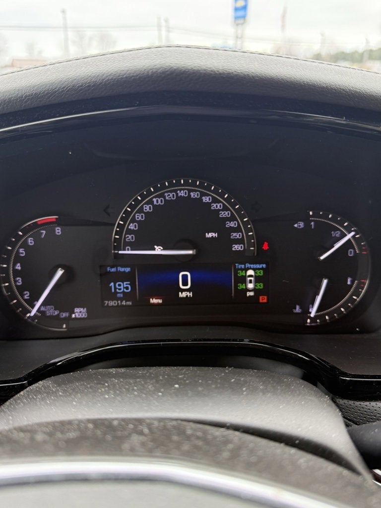 ** 3 MONTH / 3000 MILE POWERTRAIN APPLIES **, 18 x 8 Bright Machined Finish Aluminum Wheels, 2-Way Power Driver Lumbar Control Seat Adjuster, 2-Way Power Passenger Lumbar Control Seat Adjuster, 3.20 Axle Ratio, 4-Wheel Disc Brakes, 4-Wheel Independent Suspension, 8 Speakers, 8-Way Power Front Passenger Seat Adjuster, ABS brakes, Air Conditioning, Alloy wheels, AM/FM radio: SiriusXM, Apple CarPlay/Android Auto, Auto-dimming door mirrors, Auto-dimming Rear-View mirror, Automatic Dual-Zone Climate Control, Automatic temperature control, Body-Color Heated Power-Adjustable Outside Mirrors, Bodyside moldings, Bose Premium 8-Speaker Audio System Feature, Brake assist, Bumpers: body-color, Child-Seat-Sensing Airbag, Compass, Delay-off headlights, Driver & Front Passenger Heated Seats, Driver door bin, Driver vanity mirror, Dual front impact airbags, Dual front side impact airbags, Electronic Stability Control, Emergency communication system: OnStar Directions & Connections, Exterior Parking Camera Rear, Four wheel independent suspension, Front anti-roll bar, Front Bucket Seats, Front Center Armrest, Front dual zone A/C, Front reading lights, Full Leather Seats w/Mini Perforated Inserts, Fully automatic headlights, Garage door transmitter, Genuine wood door panel insert, Heated door mirrors, Heated front seats, Heated steering wheel, Illuminated entry, Leather steering wheel, Low tire pressure warning, Memory seat, Occupant sensing airbag, Outside temperature display, Overhead airbag, Overhead console, Panic alarm, Passenger door bin, Passenger vanity mirror, Power door mirrors, Power driver seat, Power Liftgate, Power moonroof: UltraView, Power passenger seat, Power steering, Power windows, Premium audio system: Cadillac CUE, Radio data system, Radio: Cadillac CUE Info & Media Control System, Rain sensing wipers, Rear anti-roll bar, Rear reading lights, Rear seat center armrest, Rear window defroster, Rear window wiper, Remote keyless entry, Roof rack: rails only, SiriusXM Satellite Radio, Speed control, Speed-sensing steering, Split folding rear seat, Spoiler, Steering wheel memory, Steering wheel mounted audio controls, Tachometer, Telescoping steering wheel, Tilt steering wheel, Traction control, Trip computer, Variably intermittent wipers, Voltmeter.