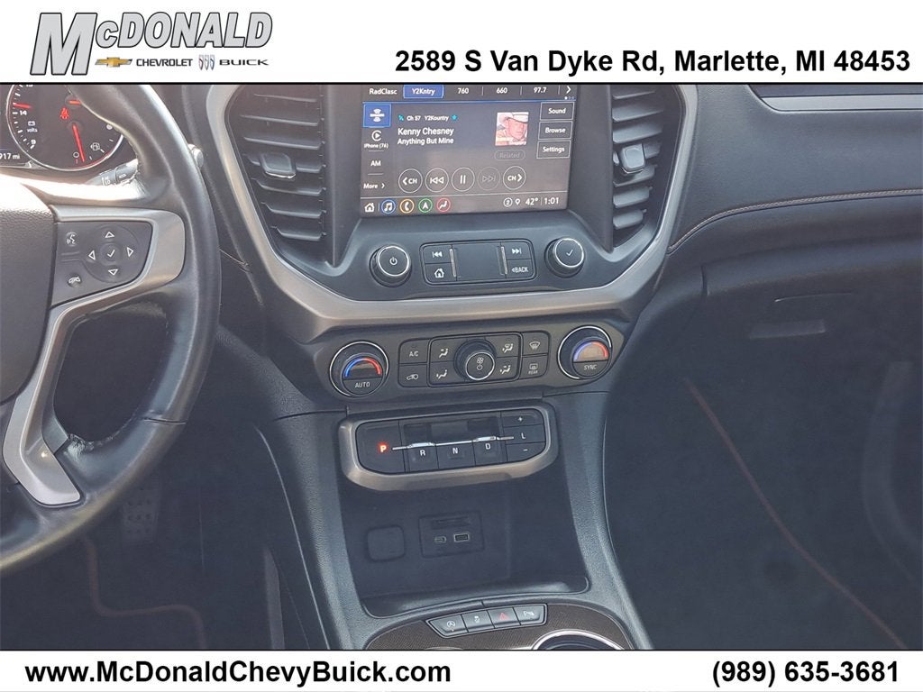 AWD, Kalahari / Jet Black Cloth, 3.49 Final Drive Axle Ratio, 3rd row seats: split-bench, 4-Way Manual Passenger Seat Adjuster, 4-Wheel Disc Brakes, 6-Passenger (2-2-2 Seating Configuration), 8 Speakers, 8-Way Power Driver Seat Adjuster, ABS brakes, Air Conditioning, Alloy wheels, AM/FM radio: SiriusXM with 360L, Apple CarPlay/Android Auto, Auto High-beam Headlights, Auto-dimming Rear-View mirror, Automatic temperature control, Bose Premium 8-Speaker Audio System Feature, Brake assist, Bumpers: body-color, Compass, Delay-off headlights, Driver door bin, Driver vanity mirror, Dual front impact airbags, Dual front side impact airbags, Electronic Stability Control, Emergency communication system: OnStar and GMC Connected Services capable, Four wheel independent suspension, Front anti-roll bar, Front Bucket Seats, Front Center Armrest, Front dual zone A/C, Front fog lights, Front reading lights, Fully automatic headlights, Garage door transmitter, Heated door mirrors, Heated Driver & Front Passenger Seats, Heated front seats, Illuminated entry, Knee airbag, Low tire pressure warning, Navigation System, Occupant sensing airbag, Outside temperature display, Overhead airbag, Overhead console, Panic alarm, Passenger door bin, Passenger vanity mirror, Power door mirrors, Power Driver Lumbar Control Seat Adjuster, Power driver seat, Power Liftgate, Power steering, Power windows, Premium audio system: GMC Infotainment System, Premium Cloth Seat Trim, Radio data system, Radio: AM/FM 8 Diagonal Multi-Touch Navigation, Rear air conditioning, Rear anti-roll bar, Rear reading lights, Rear window defroster, Rear window wiper, Remote keyless entry, Roof rack: rails only, Security system, SiriusXM w/360L, Speed control, Speed-sensing steering, Spoiler, Steering wheel mounted audio controls, Tachometer, Telescoping steering wheel, Tilt steering wheel, Traction control, Trip computer, Turn signal indicator mirrors, Variably intermittent wipers, Voltmeter, Wheels: 17 Gloss Black Aluminum, Wireless Apple CarPlay/Wireless Android Auto, AWD, Kalahari / Jet Black Cloth.